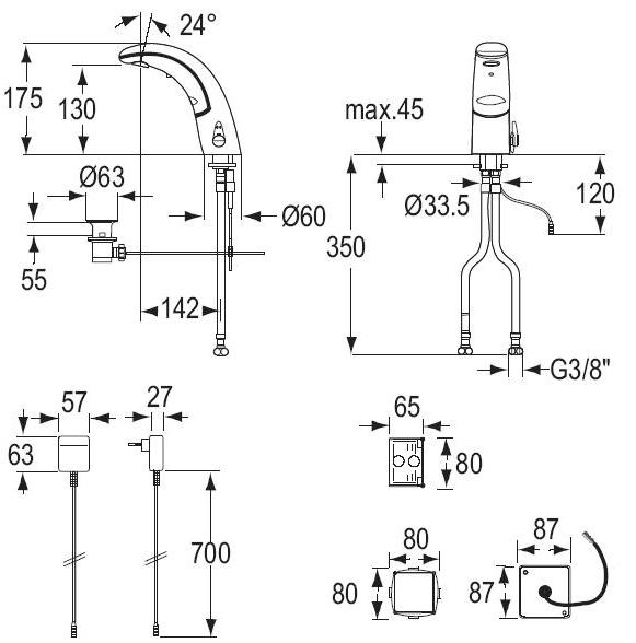Berøringsfri elektronisk styret vaskearmatur med: