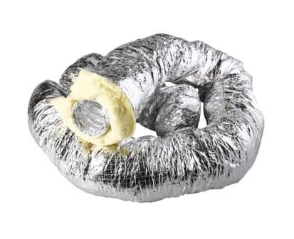 Isoleret alufolie flexslange med 25 mm isolering. Kan tåle op til 250 grader C. Anvendes som aftræksslange i forbindelse med aftræk fra emfang og køkken, hvor der stilles større krav til max temperaturområdet. Der skal anvendes en isoleret flexslange, når et koldt loftsrum passeres, da isoleringslaget minimerer kondensdannelsen, når den varme luft fra fx. badet passerer det kolde loftsrum