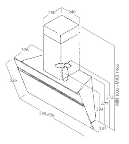 • Produkt (BxDxH):598 x 326 x 1035 - 1465 mm