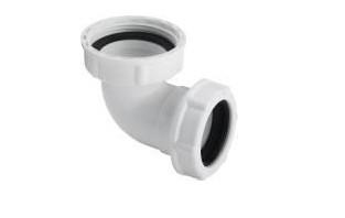 Afgangsvinkel 1¼" x 32 mm. i hvid plast. Bruges under håndvasken.