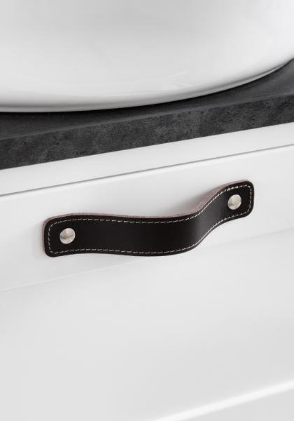 Håndtag i ægte sort eller mørkebrunt læder.