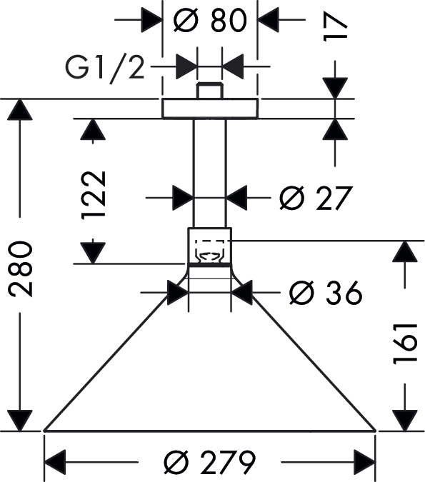 loftstilslutningslængde: 280 mm