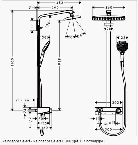 Hansgrohe Raindance Select E 360 ST Showerpipe