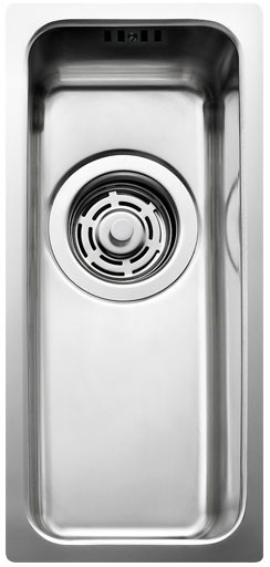 Enkeltvask med strainer. Leveres med vandlås. For underlimning.