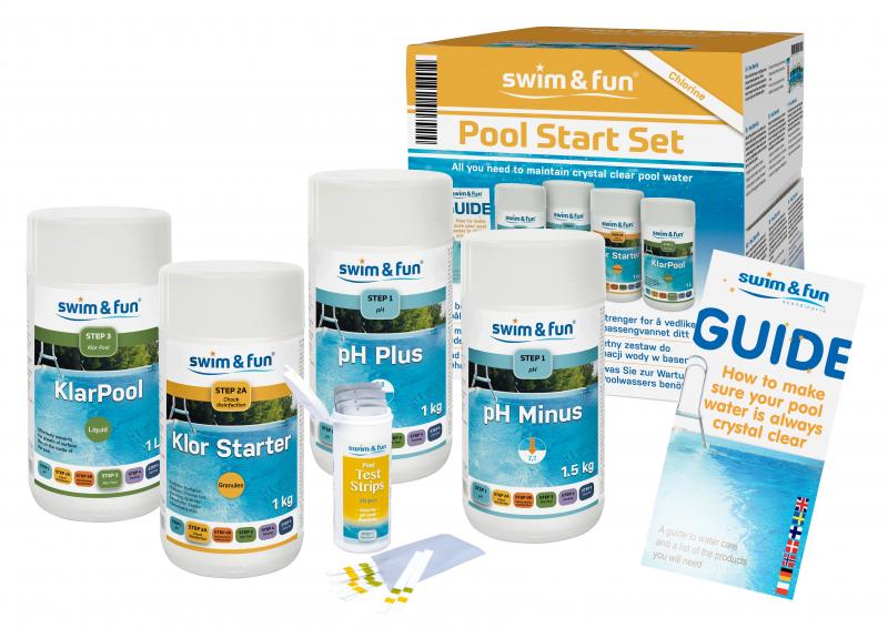 Med et Pool Start-Set er du sikker på at komme godt i gang med badesæsonen. Sættet indeholder alle de plejemidler, der er nødvendige for at holde vandet i poolen rent og indbydende, samt en overskuelig og informativ guide.