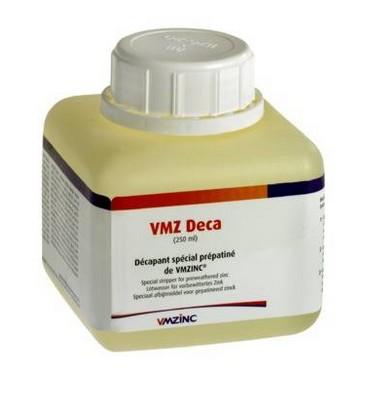 DECA afrensningsmiddel til afrensning af forpatineret zink Inden lodning af forpatineret zink, skal forpatineringen renses af. Til afrensning af forpatineret zink (QUARTZ-ZINC og ANTHRA-ZINC) anvendes DECA VMZ afrensningsmiddel. Se fremgangsmåde i VMZINC's tekniske vejledning, som kan hentes på www.vmzinc.dk. |